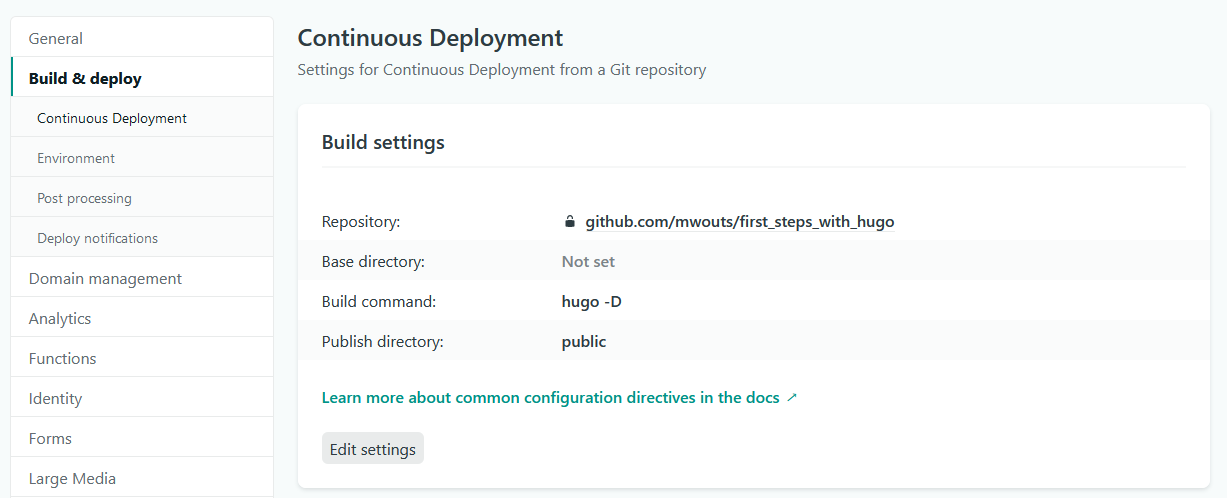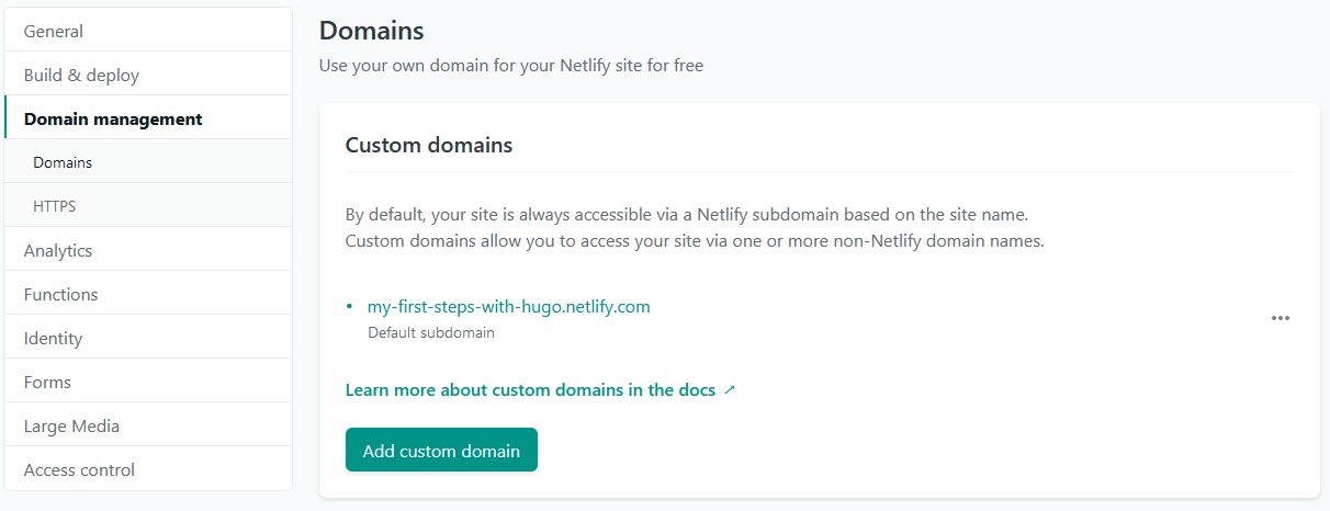 Then, all I had to do was to change the site domain to https://my-first-steps-with-hugo.netlify.com/